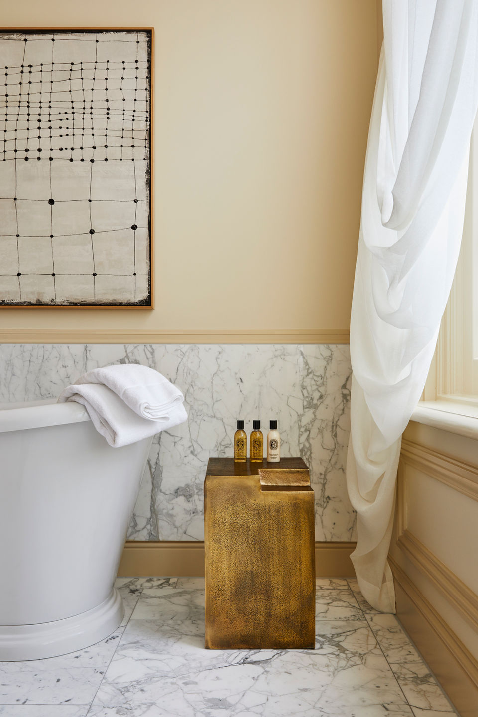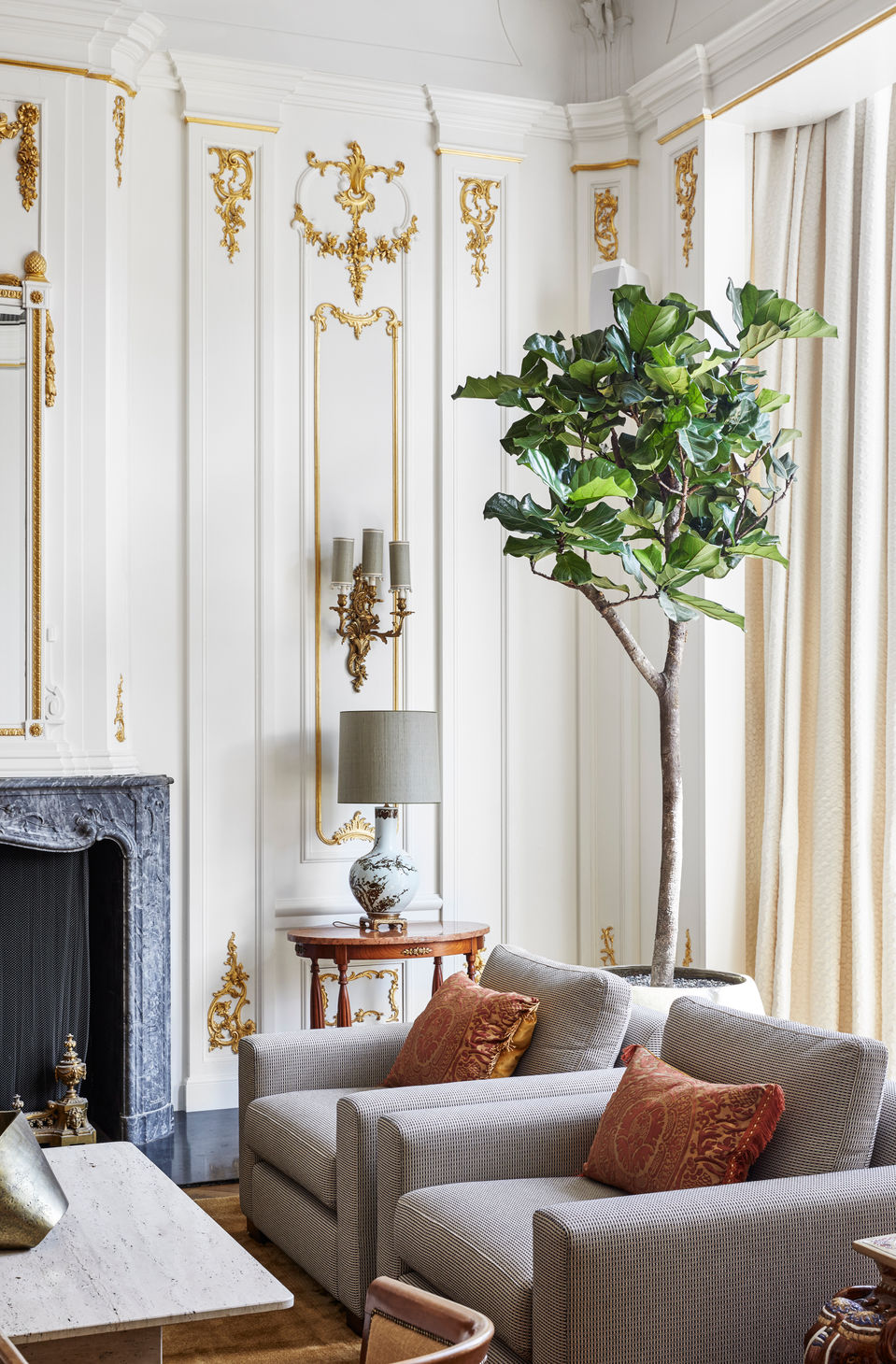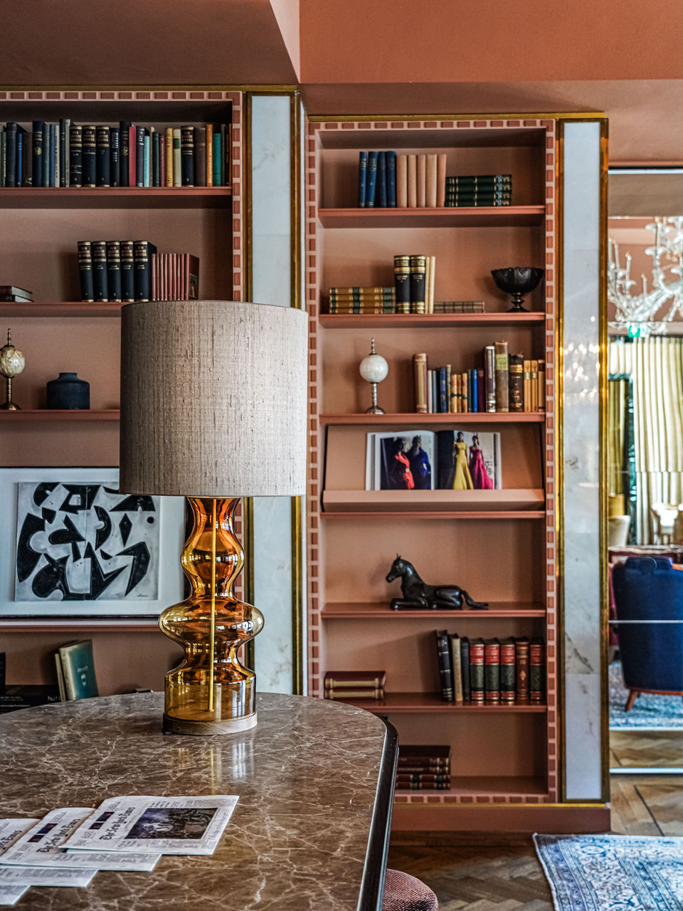 Luxurious carpets and atmospheric lighting combined with rich wallpaper, voluptuous curtains and refined details create a welcoming atmosphere and understated luxury in which you want to spend time, at any time of the day, all year round. The re-design consists of a play with organic shapes, soft lines and layered approach blending in the traditional elements of the past in combination with a refreshed feeling of the present. This is portrayed in multiple unique objects, antiques, bespoke furniture, warm color palette, and rich materials.